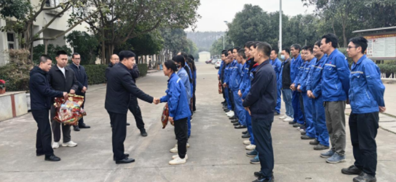 趙立平副總經(jīng)理給員工派發(fā)節(jié)日紅包、大禮包
