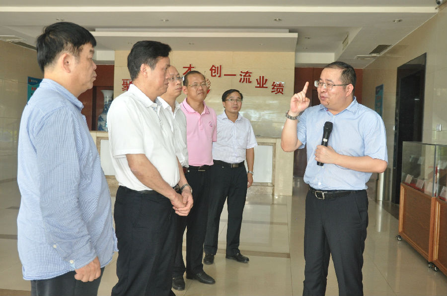 自治區(qū)編辦、績效辦主任謝志剛等一行人于7月28日下午到龍?zhí)懂a業(yè)園銀億新材料有限公司進行調研。陪同的還有市領導覃書記、市編辦領導劉副。銀億董事長王小豐親自做產品介紹。
