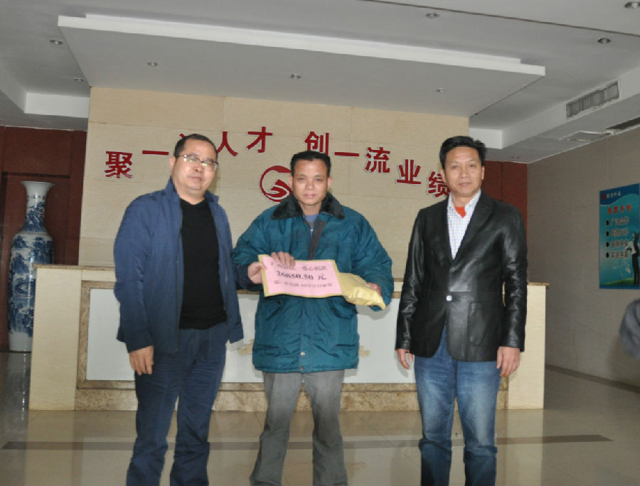 公司董事長王小豐和工會主席章群宏親手把募捐來的善款交到員工家屬手中,患者家屬十分感動,動容地說,感謝銀億公司的愛心幫助,感謝領導的關懷,感謝員工無私的愛心損贈。