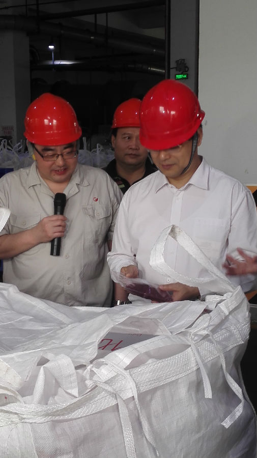 銀億集團(tuán)公司副總裁施偉光專程從寧波趕來、廣西公司董事長(zhǎng)王小豐、常務(wù)副總張學(xué)飛等公司領(lǐng)導(dǎo)熱情接待莫恭明書記一行,并陪同參觀了鈷鹽車間。