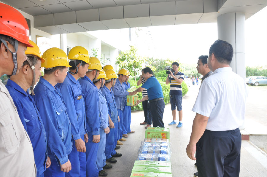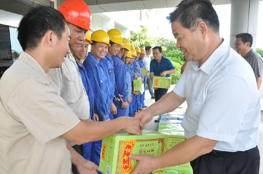 炎炎夏日,太陽高掛,室外溫度高達38度以上,縣總工會此次送清涼慰問,給炎熱的夏日帶來了一絲清涼。周鵬昌主席在公司領導的陪同下,看望、慰問了在高溫酷暑中仍堅守在崗一線工人,同時為他們送去了涼茶、毛巾等降溫物品。周鵬昌主席在慰問活動中一句句“你們辛苦了,謝謝大家的辛勤工作!,天氣熱,大家要注意身體,做到勞逸結合”關懷的話語和親切的慰問,讓一線工人確實感受到了縣總工會作為“娘家人”的真摯關愛。