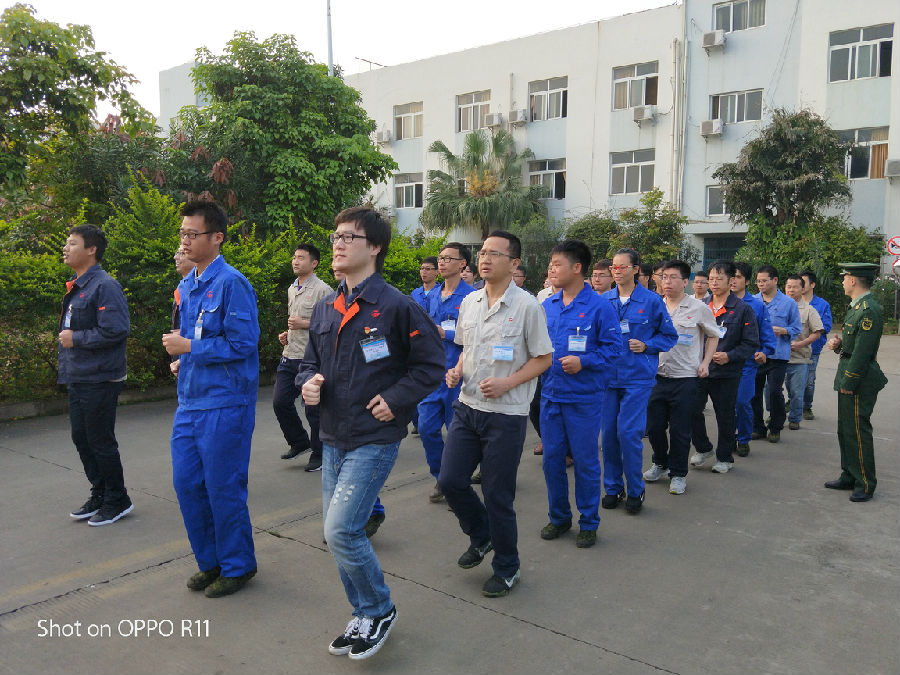 本屆培訓(xùn)班為期一年,每周有課,全部利用晚上的時(shí)間上課,采用公司優(yōu)勢(shì)資源,將聘請(qǐng)專(zhuān)家、教授及集團(tuán)金牌講師授課,全力打造一支卓越的干部隊(duì)伍。看,軍訓(xùn)開(kāi)始了,每天早晨展現(xiàn)出一道高麗的風(fēng)景線,全體學(xué)員在邊防部隊(duì)吳教官的訓(xùn)教下,隊(duì)列、軍姿、跑步,時(shí)而整齊發(fā)出嘹亮口令:121、1234!宏亮的聲音響徹云霄,久久回蕩……