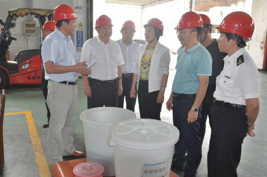 章群宏副總經(jīng)理向呂劍楓副市長(zhǎng)一行介紹了企業(yè)落戶龍?zhí)懂a(chǎn)業(yè)園區(qū)以來(lái)的發(fā)展歷程,匯報(bào)了企業(yè)目前的生產(chǎn)經(jīng)營(yíng)現(xiàn)狀、產(chǎn)品供不應(yīng)求的良好勢(shì)頭、新能源產(chǎn)業(yè)發(fā)展的前景,我司硫酸鎳目前產(chǎn)能居全國(guó)之首,成為國(guó)內(nèi)鋰電池基礎(chǔ)原材料生產(chǎn)基地,各項(xiàng)技術(shù)研發(fā)及技術(shù)成果轉(zhuǎn)換得到了很好的應(yīng)用,同時(shí)也匯報(bào)當(dāng)前的主要困難,需要市政府出面協(xié)調(diào)解決的問(wèn)題。調(diào)研中,章副總還與呂副市長(zhǎng)一行深入鎳鹽車間實(shí)地調(diào)研,詳細(xì)介紹了我司的生產(chǎn)工藝和產(chǎn)品產(chǎn)線,匯報(bào)了產(chǎn)品市場(chǎng)和收益情況。
