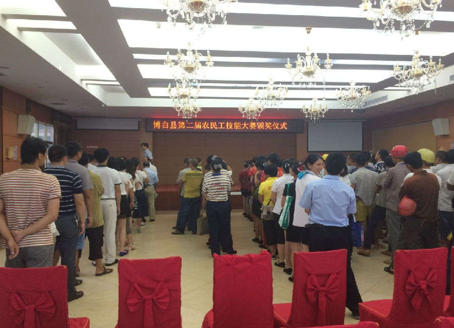 2015年8月31日,廣西博白縣法治廣場上張燈結(jié)彩,來自全縣各個廠區(qū)的技工門紛紛再此摩拳擦掌,共同迎接“博白縣第二屆農(nóng)民工技能大賽”開幕儀式。