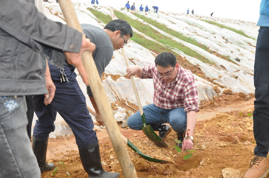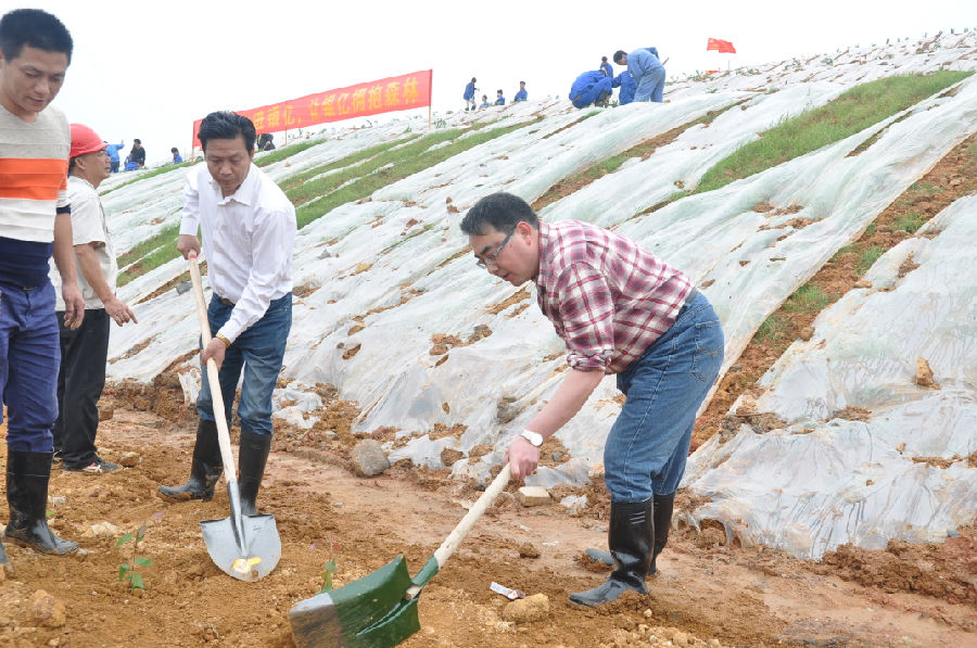 3月12日的這天,天空灰蒙,但依舊阻擋不了我們的腳步。中午1點(diǎn)整,廣西銀億公司五個(gè)黨支部、團(tuán)支部共計(jì)300多人在公司銀億精神宣傳欄下集合完畢后整裝齊發(fā),浩浩蕩蕩前往公司渣場(chǎng)開始了兩個(gè)小時(shí)的植樹活動(dòng)。在活動(dòng)過程中,大家興致勃勃、情緒高漲,這正是擼起袖子,加油干!細(xì)心的將一顆顆小樹苗放入樹坑、填土扶正、踩實(shí)澆水,精心的栽種每一顆樹苗。在植樹中,不少人的臉上流下了喜悅汗水,都忙的忘記了擦拭,這樣的忘我構(gòu)成了一幅獨(dú)特的勞動(dòng)畫面,十分美麗。
