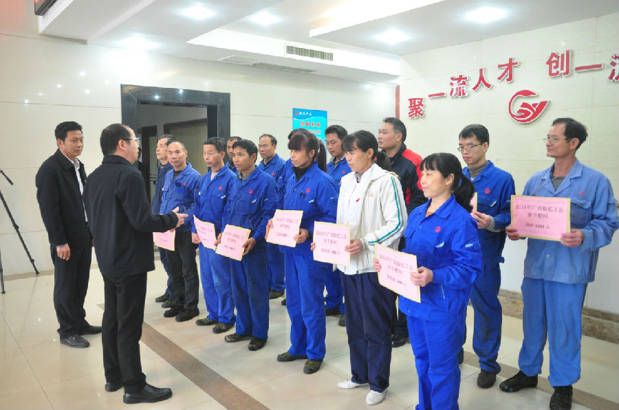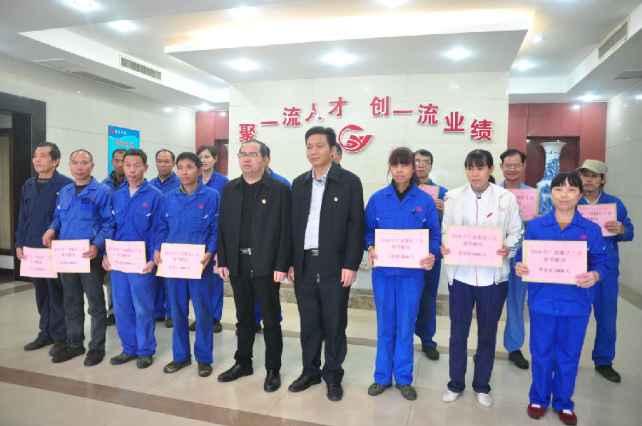 在慰問公司困難職工現(xiàn)場,王小豐董事長深情地說:“廣西銀億是個(gè)大家庭,職工是銀億大家庭的組成部分,公司無論如何都不會(huì)忘記為公司發(fā)展做出奉獻(xiàn)的員工,尤其是困難職工,公司盡最大的努力去幫助你們度過眼前的難關(guān),希望大家在新的一年里,再接再厲,努力工作改觀生活,繼續(xù)保持樂觀心態(tài),在公司的幫助下順利渡過難關(guān),任何時(shí)候,公司都將是你們堅(jiān)強(qiáng)的后盾”。