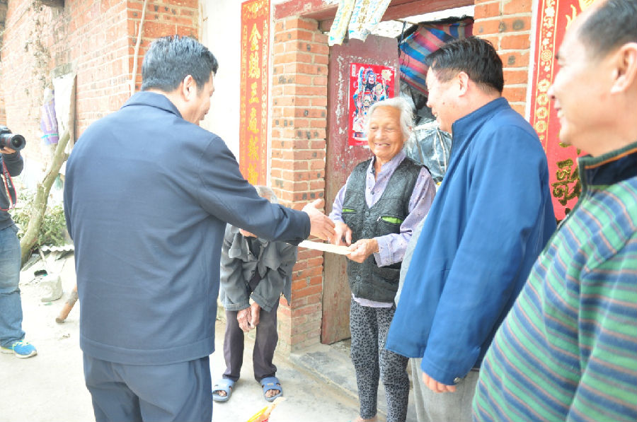 當(dāng)廣西銀億公司工會(huì)主席章群宏把慰問金、優(yōu)質(zhì)大米、食用油送到困難村民家里,一位白發(fā)蒼蒼的老大娘握著章主席的手眼含淚水,激動(dòng)的地說:“銀億救了我們?nèi)遥瑳]有銀億我這個(gè)家早就撐不下去了,感謝銀億公司,”章群宏主席深情地說:“我代表銀億公司來慰問你們,雖然金額不多,表示一點(diǎn)心意,買點(diǎn)年貨,幫助你們度過難關(guān),過個(gè)幸福年,希望你們?cè)缛彰撠氈赂唬⒆觽兒煤脤W(xué)習(xí),長大了,學(xué)成歸來時(shí)歡迎到銀億公司來工作,銀億公司和你們共同發(fā)展”。
